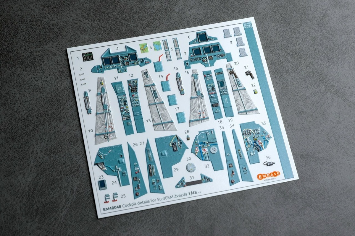Embase из Твери выпускает "трехмерную декаль" для деталировки кабины новой модели Су-30СМ в масштабе 1/48 от "Звезды" в вариантах с