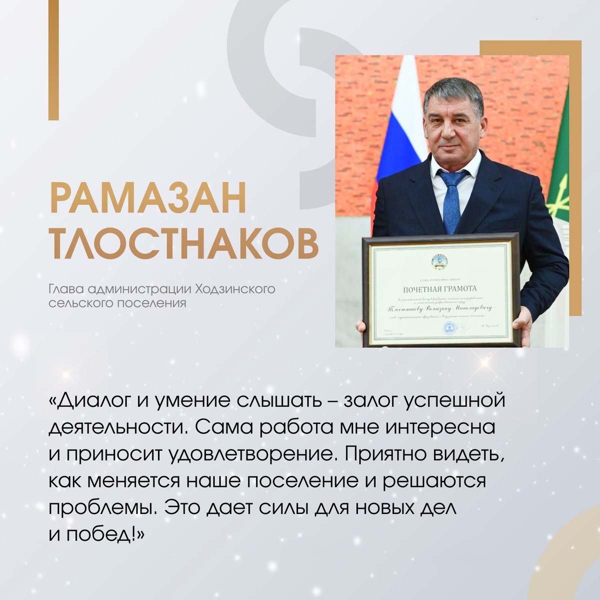 🔹С октября 2012 года Рамазан Тлостнаков возглавляет Ходзинское сельское поселение. За это время он успешно решил множество вопросов, касающихся социально-экономического развития и организации жизни в ауле. 🔹Под его руководством были проведены значительные работы, такие как строительство нового Дома культуры и капитальный ремонт врачебной амбулатории. 🔹Рамазан Магамедович пользуется уважением среди жителей за свой профессионализм, мудрость и преданность делу. Его активная работа и стремление улучшить жизнь в поселении вдохновляют окружающих. 🔹Хотите узнать больше о Рамазане Тлостнакове и его достижениях? Читайте полную статью: https://clck.ru/3Qy5Xk ⏪ #ВАРМСУ #марафонСлужение