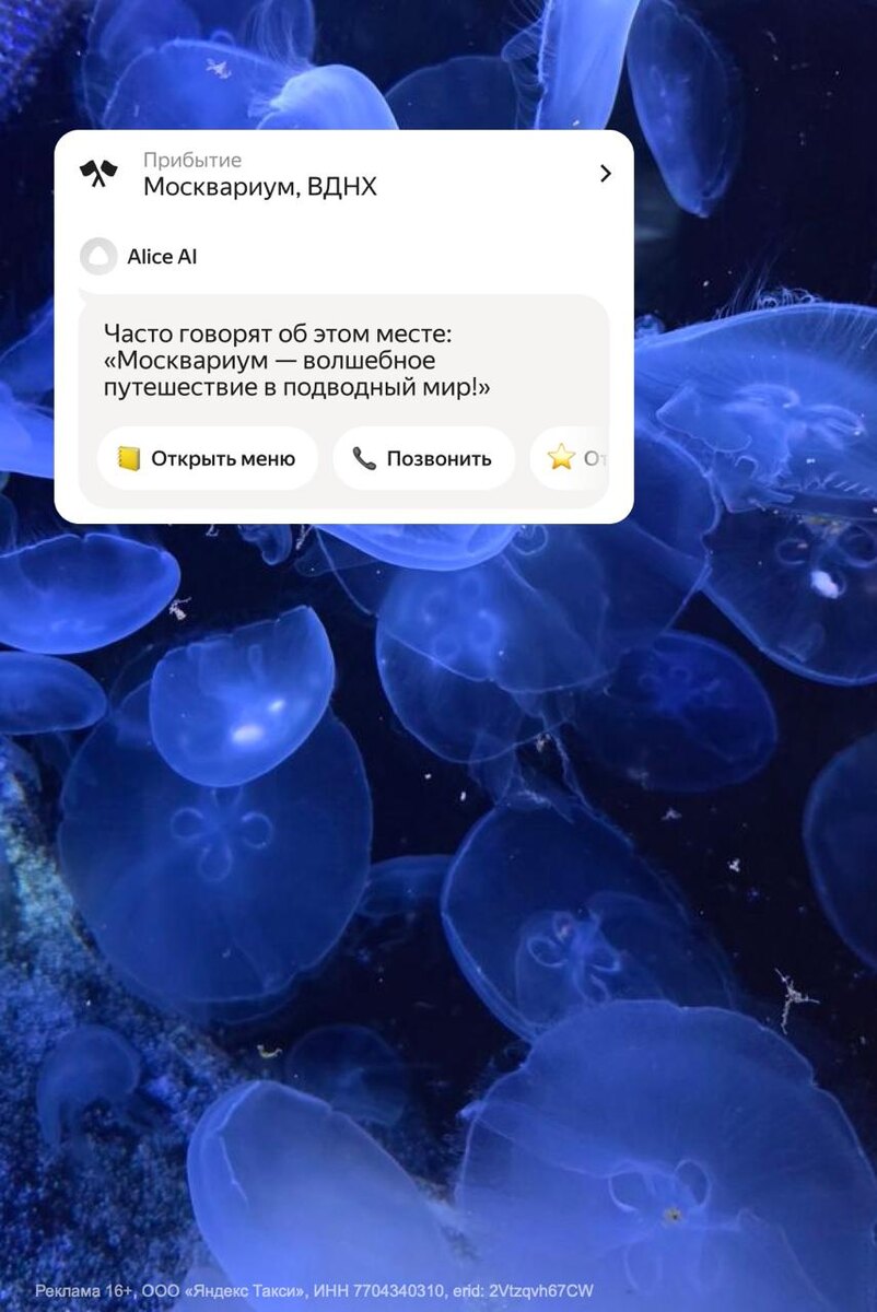 ⭐️ Иногда самое сложное – не собраться всей семьёй, а решить, куда поехать. Хочется, чтобы всем было интересно, не скучно и чтобы по пути не передумать три раза. Недавно, когда мы ехали в такси в Москвариум, на экране заказа всплыла короткая подсказка с тем, что чаще всего говорят об этом месте. Появилось ощущение предвкушения, хотя были там уже не раз. В Яндекс Go такие ИИ-подсказки появляются автоматически, они собирают отзывы посетителей и выделяют самое важное о месте заранее. Достаточно указать название места – ресторан, театр, парк или аэропорт. А с помощью кнопок быстрых действий по дороге можно посмотреть меню, позвонить в заведение или купить билеты. И кажется, иногда достаточно пары фраз на экране, чтобы настроение на день сразу сложилось 🤍