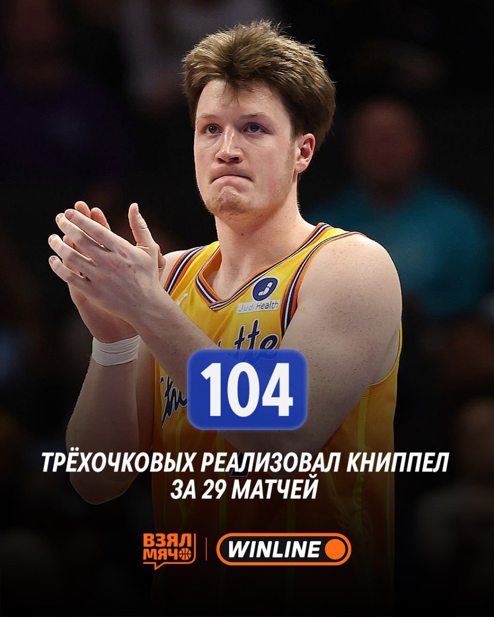 ? Новичок «Шарлотт» стал самым быстрым игроком в истории НБА, добравшимся до отметки 100 трёхочковых — всего за 29 матчей. При текущем темпе (3,5 из 8,6 в среднем) он идёт на 289 реализованных дальних попаданий за год. Для сравнения: Стефен Карри в своём дебютном сезоне реализовал 166 трёхочковых. Средний показатель Карри в карьере — 4 трёхочковых за матч. Сможет ли Книппел обогнать его? 🤔 🏀 ПОДПИШИСЬ — ЗДЕСЬ ЖИВЁТ БАСКЕТБОЛ!
