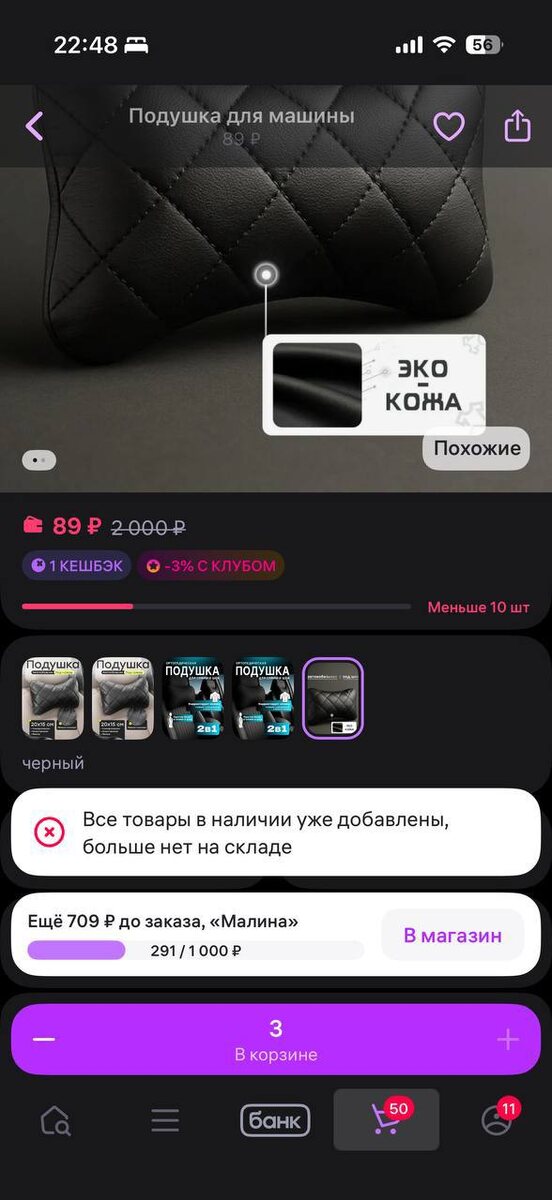 Увидел аномалию в выдаче - подушка за 89 рублей при рыночной цене в 500