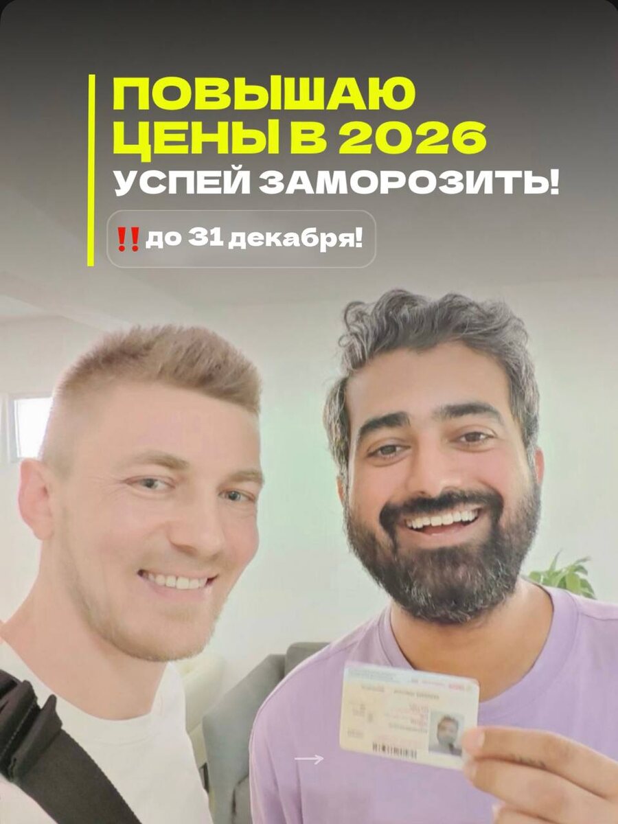 Но можно их заморозить. ‼️ Успейте до 31 декабря. Для этого нужно: ✅ Консультацию по ВНЖ или родам — оплатить ✅ По услугам на сопровождение по ВНЖ и родам — внести предоплату в размере 40%. Так вы зафиксируете старую цену, даже если ваши роды или продление/получение ВНЖ/ПМЖ запланированы на конец 2026. Чтобы заморозить свою цену напишите мне лично на WhatsApp по номеру +52 998 459-14-38 или нажав сюда 👈 📆В этом году я провожу консультации до 28 декабря — есть ещё пара слотов. Не откладывайте важное решение на следующий год и войдите в новый с определённостью.