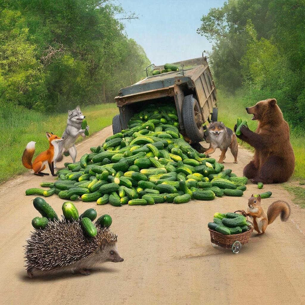 Я конечно понимаю, что торт с огурцами выглядит как преступление. Ну а что делать, ведь мы уже съели кусок торта. Красота требует жертв. Поверьте, чтоб не поправиться, можно и не только огурец проглотить.