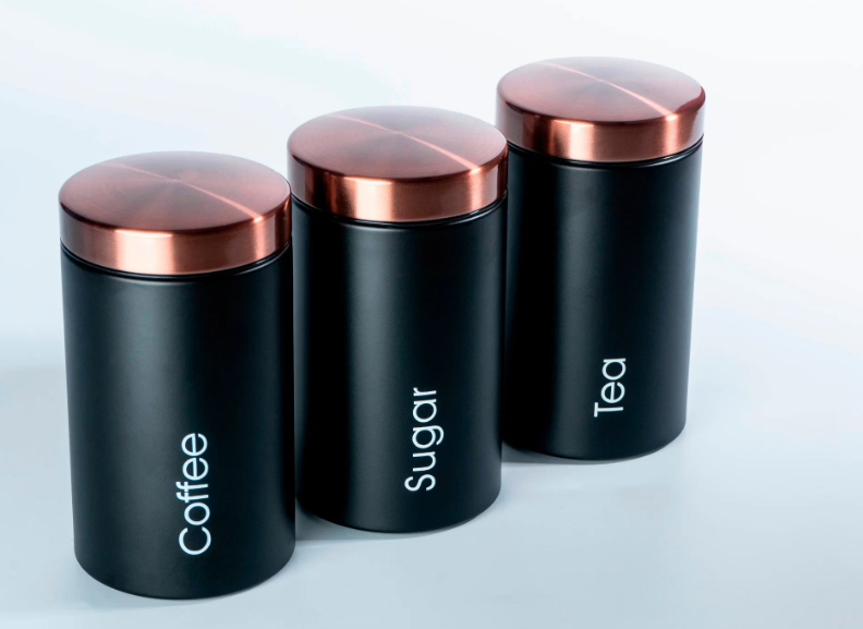 А есть те, после которых кухня вдруг выглядит дороже, а бардак — как будто не про вас. Вот именно такие — ниже. Металлический стильный набор для чая, кофе и сахара. Поставьте их просто в ряд — и кухня уже выглядит собранной. Герметичные крышки, холодный металл, без лишнего декора.