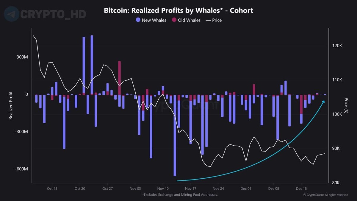 🐋 CryptoQuant: Киты перестали сливать Биткоин – давление со стороны продавцов практически сошло на нет. Крупные игроки активно фиксировали профит во время снижения BTC со $124,000 до $84,000, но сейчас рынок перешел в «фазу стабилизации».