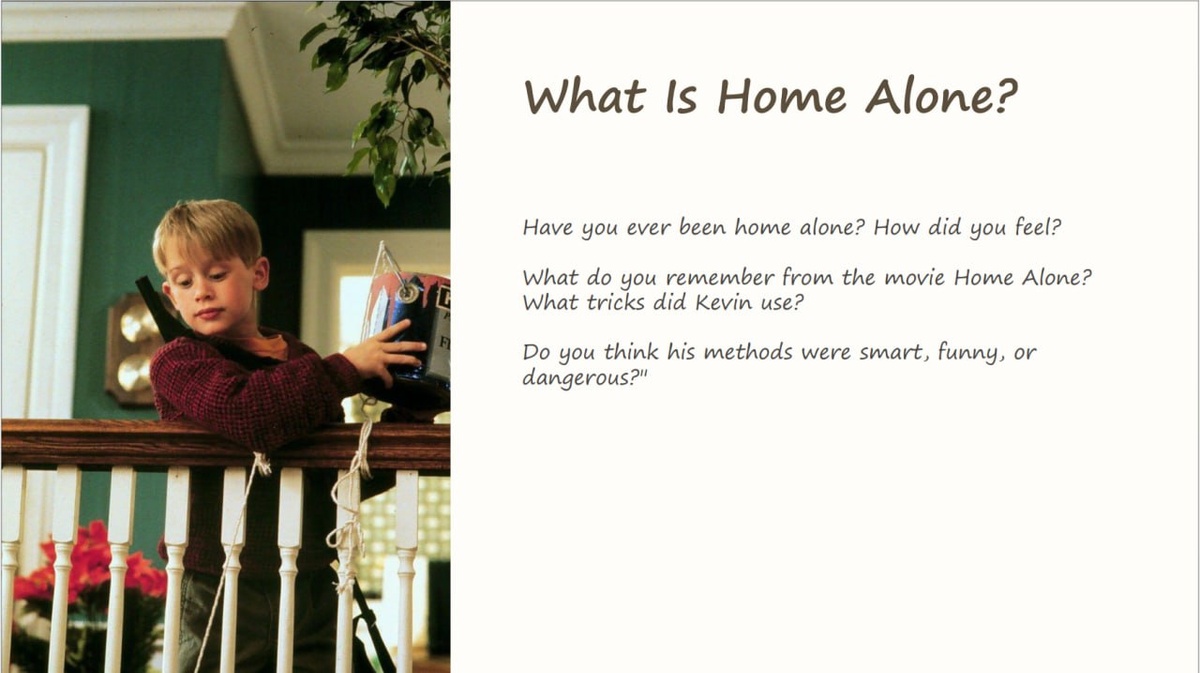 ΡΠ΅Π±ΡΡ β ΠΈΠ³ΡΠΎΠ²ΡΡ ΠΏΡΠ°ΠΊΡΠΈΠΊΡ ΠΏΠΎ ΠΌΠΎΡΠΈΠ²Π°ΠΌ ΡΠΈΠ»ΡΠΌΠ° Β«ΠΠ΄ΠΈΠ½ Π΄ΠΎΠΌΠ°Β»! Π€ΠΎΡΠΌΠ°Ρ Π·Π°Π½ΡΡΠΈΡ ΠΏΠΎΠ»ΡΡΠΈΠ»ΡΡ ΠΎΡΠ΅Π½Ρ ΠΆΠΈΠ²ΡΠΌ ΠΈ ΡΠ²Π»Π΅ΠΊΠ°ΡΠ΅Π»ΡΠ½ΡΠΌ β ΡΠ΅ΡΠ΅Π· ΠΈΠ³ΡΡ ΠΈ Π°Π½Π°Π»ΠΈΠ· ΡΠΈΡΡΠ°ΡΠΈΠΉ ΠΈΠ· ΡΠΈΠ»ΡΠΌΠ° ΡΠ΅Π±ΡΡΠ° Π½Π°ΡΡΠΈΠ»ΠΈΡΡ ΡΠ°Π·Π»ΠΈΡΠ°ΡΡ Π±Π΅Π·ΠΎΠΏΠ°ΡΠ½ΡΠ΅ ΠΈ ΡΠΈΡΠΊΠΎΠ²Π°Π½Π½ΡΠ΅ Π΄Π΅ΠΉΡΡΠ²ΠΈΡ. ΠΠΎΠ»Π΅Π·Π½ΡΠ΅ ΡΠΎΠ²Π΅ΡΡ ΠΈΠ· ΡΠΈΠ»ΡΠΌΠ°: βοΈΠΡΠ΅Π³Π΄Π° Π·Π°ΠΏΠΈΡΠ°ΡΡ Π΄Π²Π΅ΡΠΈ ΠΈ ΠΎΠΊΠ½Π° βοΈΠΠ΅ΡΠΆΠ°ΡΡ ΡΠΏΠΈΡΠΎΠΊ Π²Π°ΠΆΠ½ΡΡ