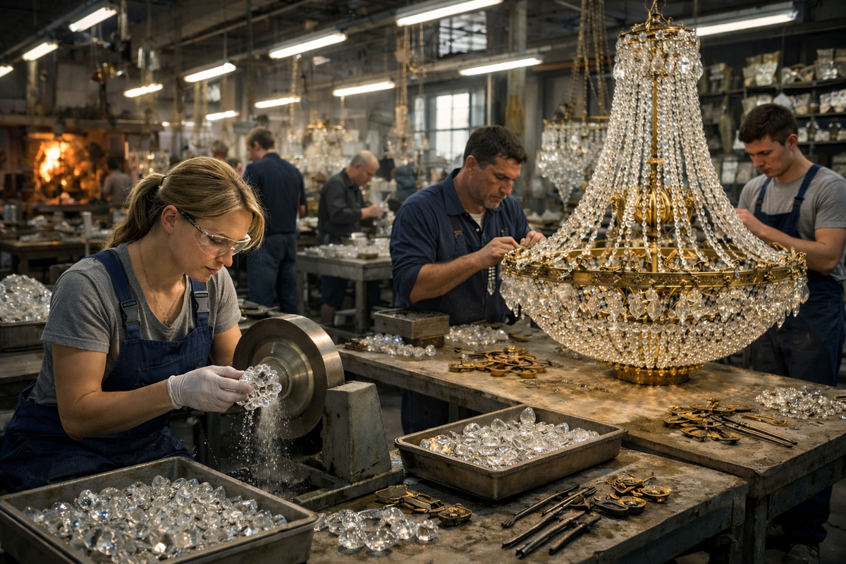 Хрустальная люстра в российском производстве сегодня представляет собой сложное изделие, в котором соединяются стекольная технология, металлообработка, электротехника и строгий контроль безопасности. Чтобы люстра работала стабильно, выдерживала вес подвесок, не перегревалась и сохраняла внешний вид годами, производитель выстраивает процесс как цепочку взаимосвязанных операций, где каждая стадия влияет на итоговое качество.