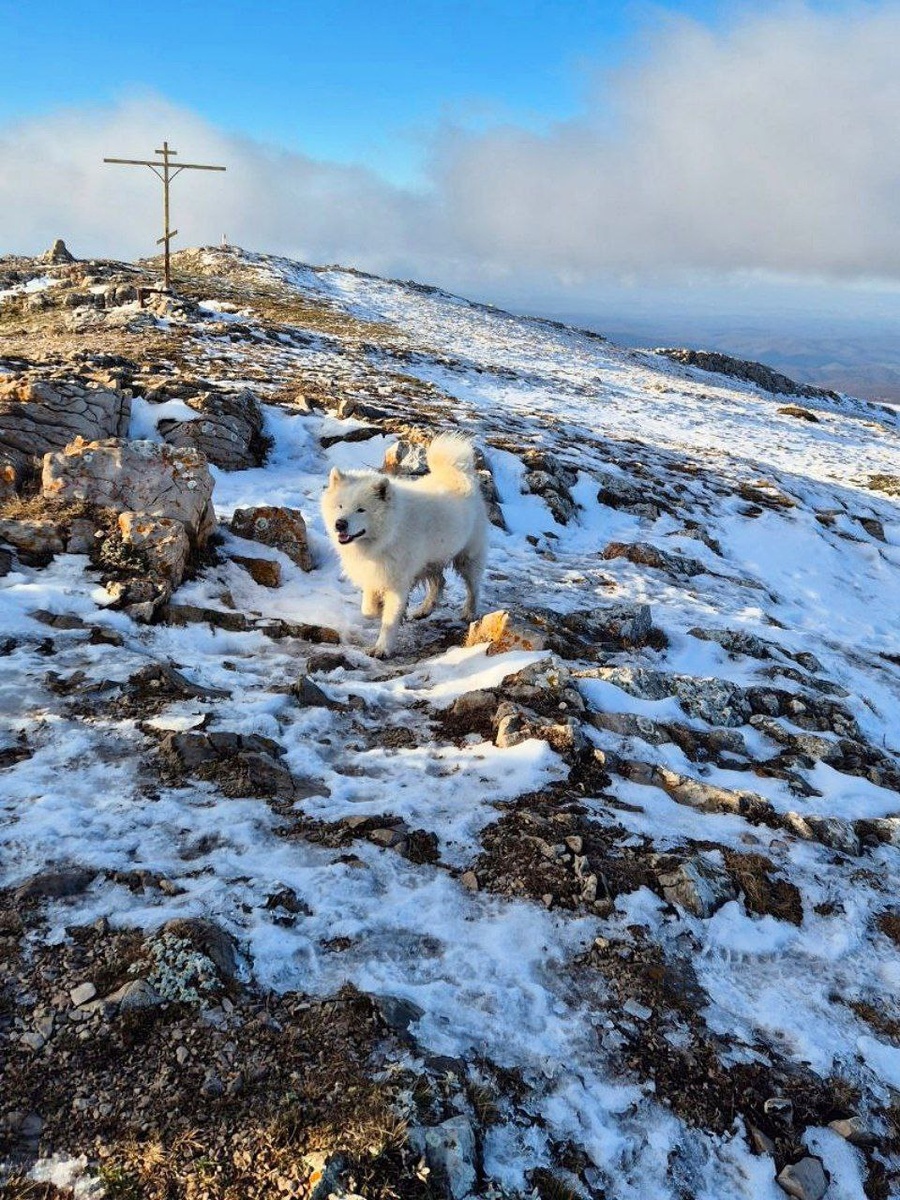 ! ❄️ Cнег в Крыму - не такой частый гость и подольше он задерживается только на вершинах гор. 🗻 На верхнем плато и северном склоне Чатыр-Дага он порой бывает даже до мая месяца. Там много расщелин и теневых сторон без солнца. ⛪️ Одна из двух гор верхнего плато - Эклизи-Бурун. В переводе означает "церковный мыс". На месте креста в средние века стояла церковь, и сюда раз в год совершался крестный ход. А до этого, в античные времена, было языческое святилище.