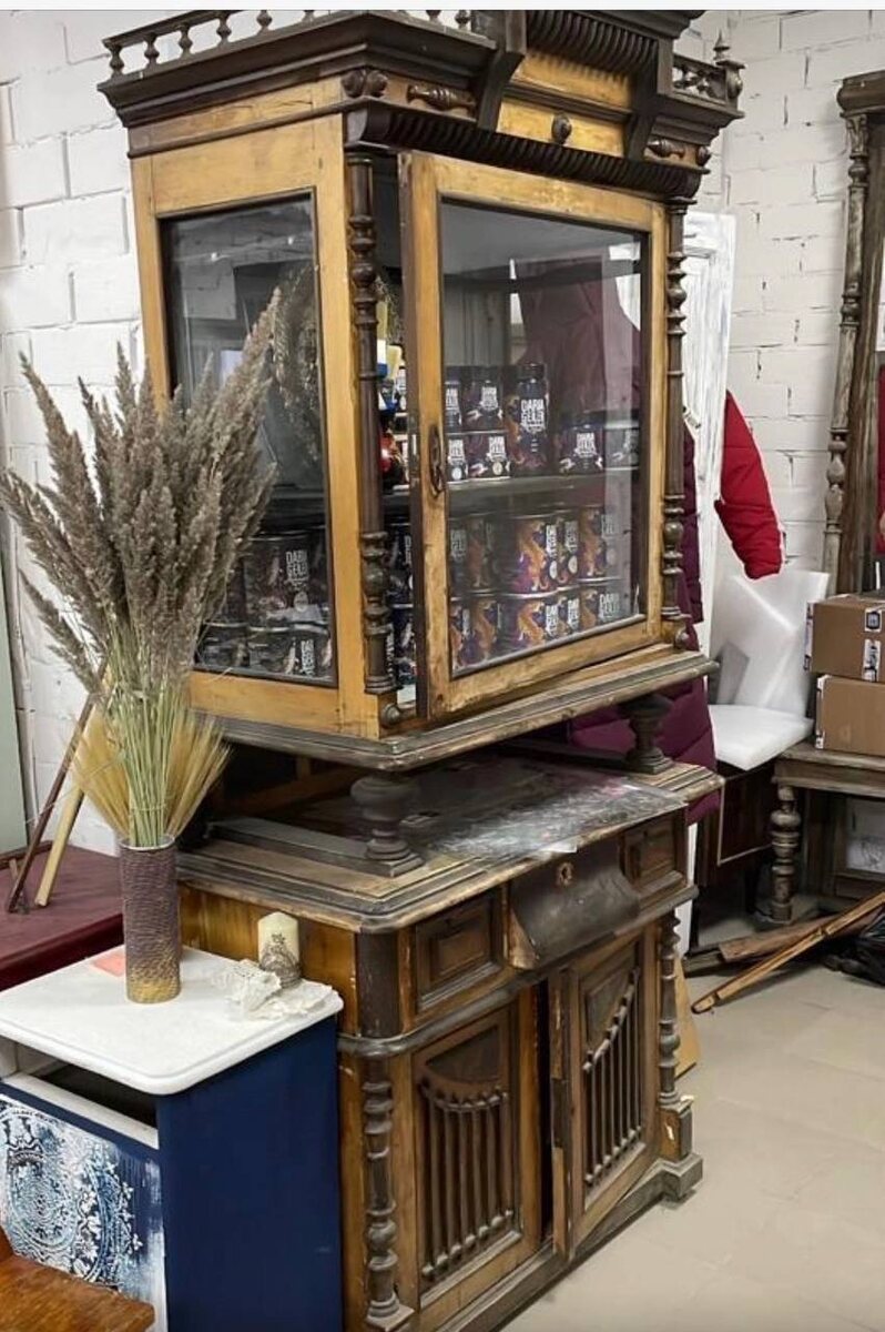 Все просто, если у вас есть такой же прекрасный вкус и талант, как у партнера бренда DARIA GEILER и реставратора из Владимира Маргариты. Вот так выглядел буфет до работы мастера. перед началом покраски велась большая подготовительная работа: ✔️убрали поврежденные жучком детали ✔️восстановили геометрию буфета ✔️полностью заменили одну из нижних дверей ✔️избавились от старого запаха ✔️шлифовали сыпящийся лак кстати, на одном из фото есть памятная надпись, что он приобретен за 85₽ :) ее оставили, не закрашивали. этапы: ☀️важная особенность таких буфетов - они составные: верхнюю, среднюю и нижнюю часть красили по отдельности. ☀️внутри нанесли 4-5 слоев мраморной краски «багровый пик» ☀️снаружи 3 слоя мраморной краски «можно все», она прекрасно укрывает, можно было и два, но сделали три для крепости ☀️всю внешнюю сторону затонировали воском «кофе» и покрыли глянцевым лаком ☀️никакой другой патины не наносили, он сияет за счет бликов лака. как вам работа Маргариты?