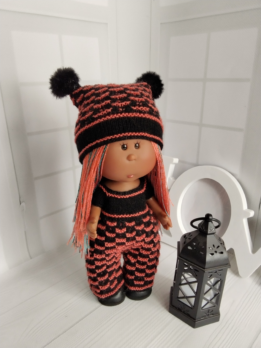 Тоже вяжем сверху вниз, чтобы шапочка смотрелась гармонично с комбинезоном.