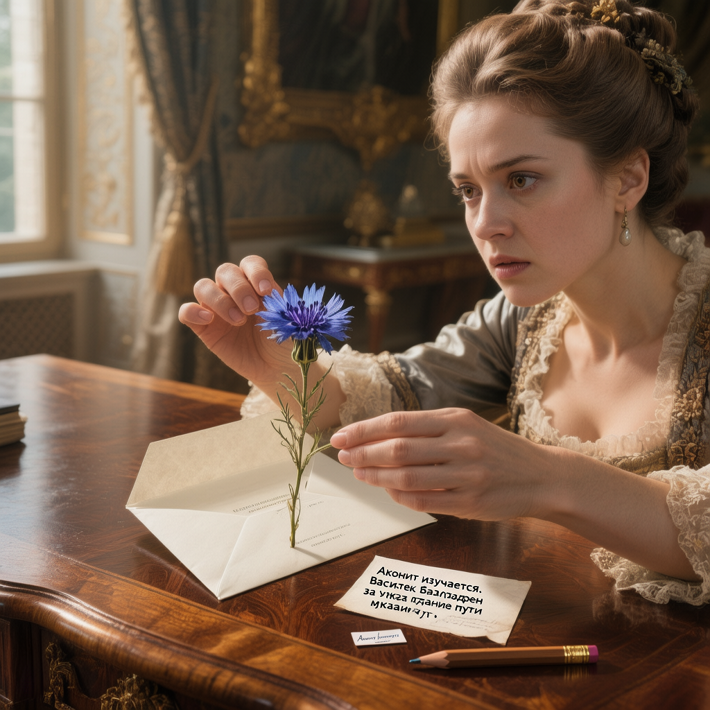Она поблагодарила его тем же способом. В следующий раз, когда императрица попросила передать графу Курагину какую-то дипломатическую записку (Екатерина все чаще использовала его для неформальных поручений), Лиза вложила в конверт засушенный цветок василька — простой, полевой, ничего не значащий при дворе. Но на крошечном клочке папиросной бумаги карандашом было выведено: «Аконит изучается. Василек благодарен за указание пути». Она понятия не имела, поймет ли он, но рискнула.