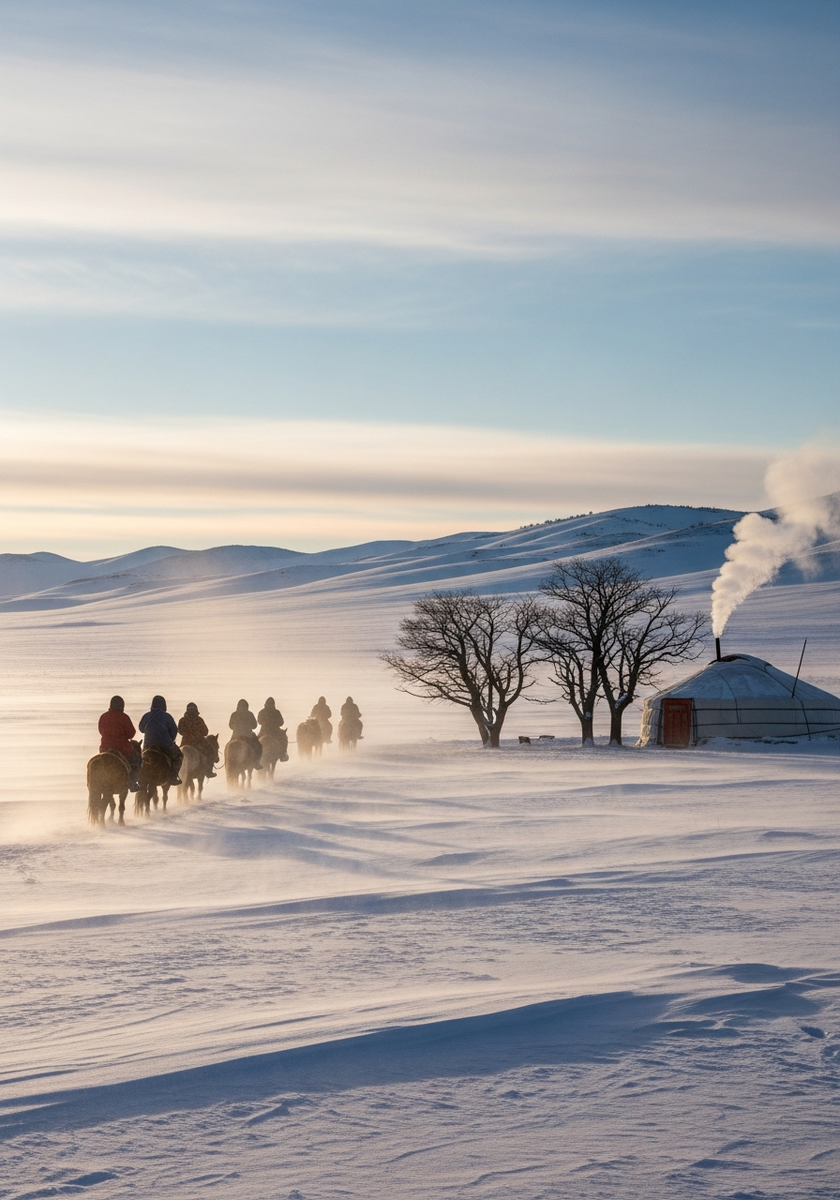 - Какие достопримечательности Монголии зимой наиболее фотогеничны? Статуя Чингисхана на фоне заснеженной степи, ледяное ущелье Ёлын-Ам в Гоби и замёрзшее озеро Хубсугул — идеальные локации для зимних фотографий.