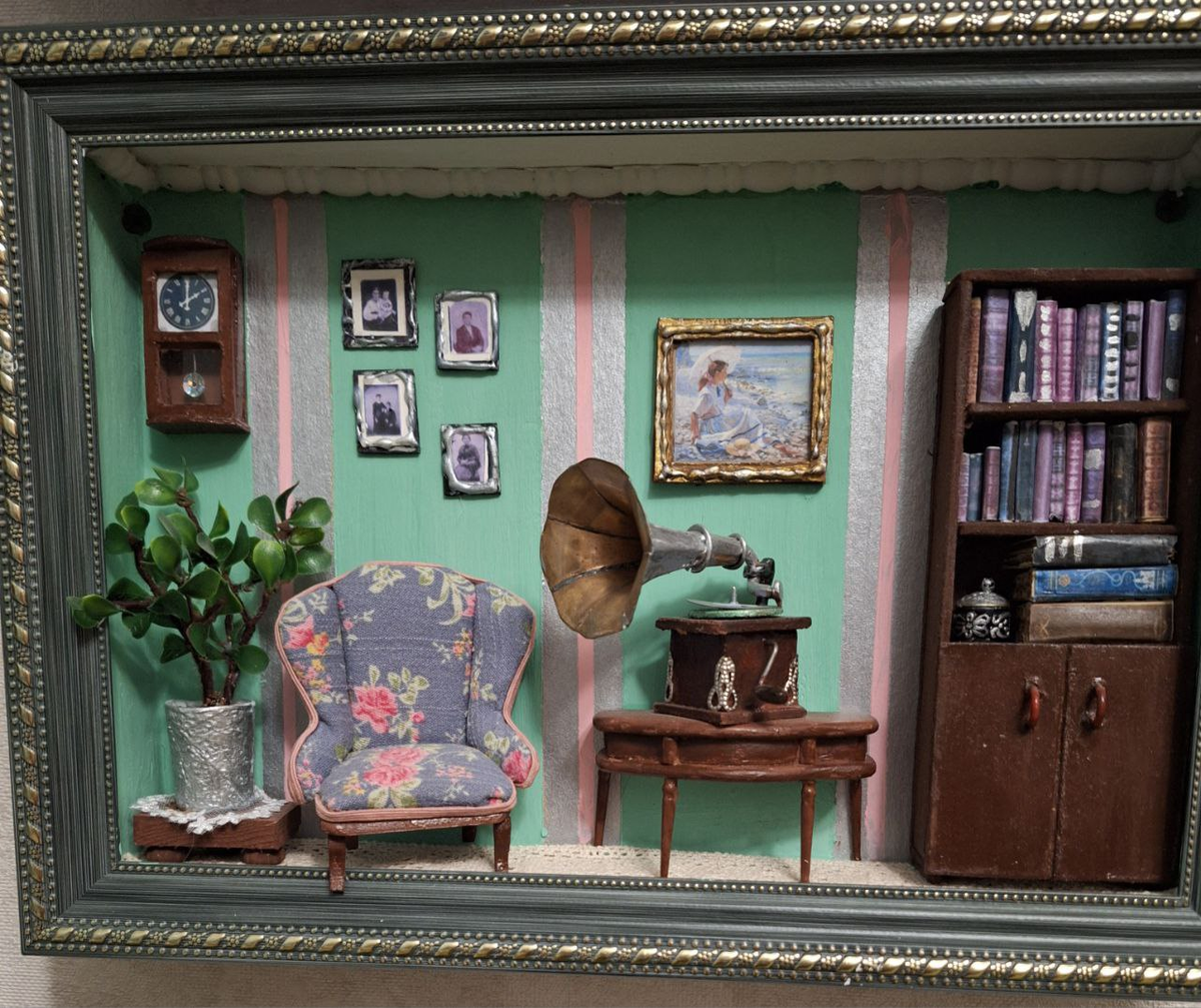 Родители на пенсии занимаются различными поделками - меднят, мама вяжет, делают шкатулки и диорамы. Конечно, каждая диорама это нерасказанная история, много мелочей которые указывают на происходящее, кто тут живет, что он делает и в какой-то момент его жизнь замирает - часы останавливаются, цветы не увядают, а музыка затихает. В этом есть своя магия, но я решил рассказать ту историю, которая застыла на на их диорамах. Что там случилось? что могло случиться? как мы попали в этот мир? Было выбрано две диорамы: Дальше надо было придумать персонажей которых мы поселим туда и сюжеты. Решили делать видео в стиле кукольной или пластилиновой анимации. Основная задача - после рассказа истории диорама должна остаться в ее настоящем виде, т.е. рассказывается короткая история, которая заканчивается так, что диорама становится такой, как в реальном мире. Ну и новые технологии. решили делать анимацию при помощи ИИ, это дешевле, быстрее, проще. И так персонажи: Сцена должна быть подготовлена для аним