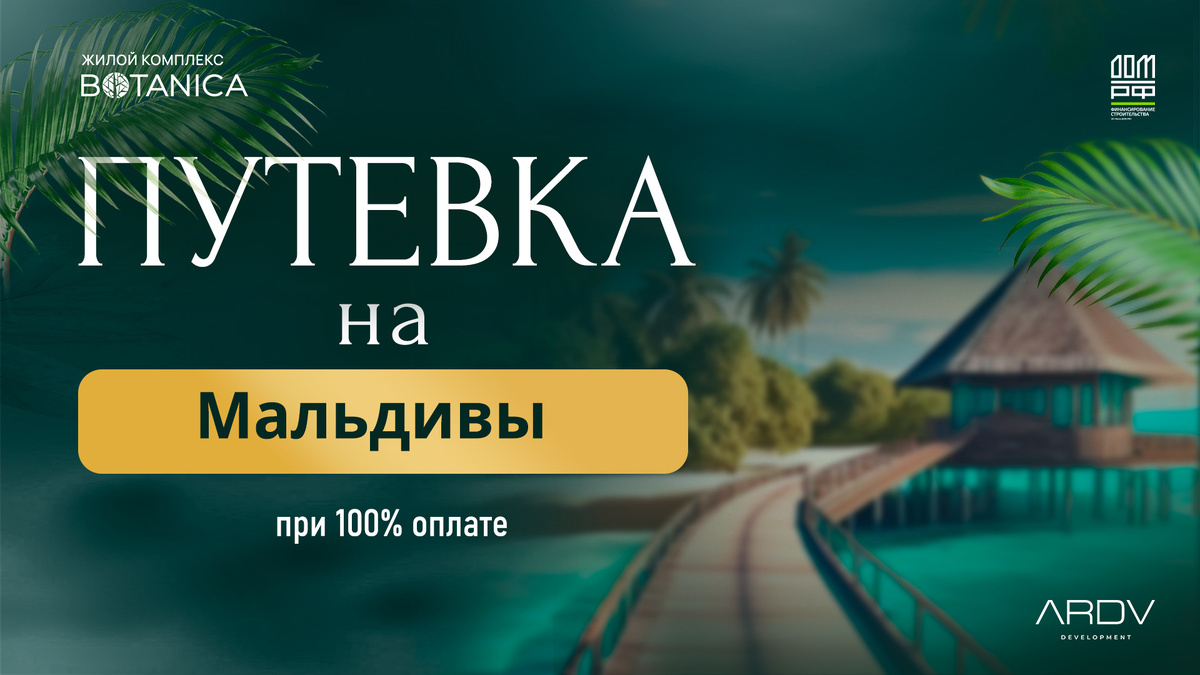 Компания АРДВ Девелопмент запускает уникальную акцию — разыгрываем путёвку на Мальдивы! 🌊🏝️ Да-да, вы не ослышались!
