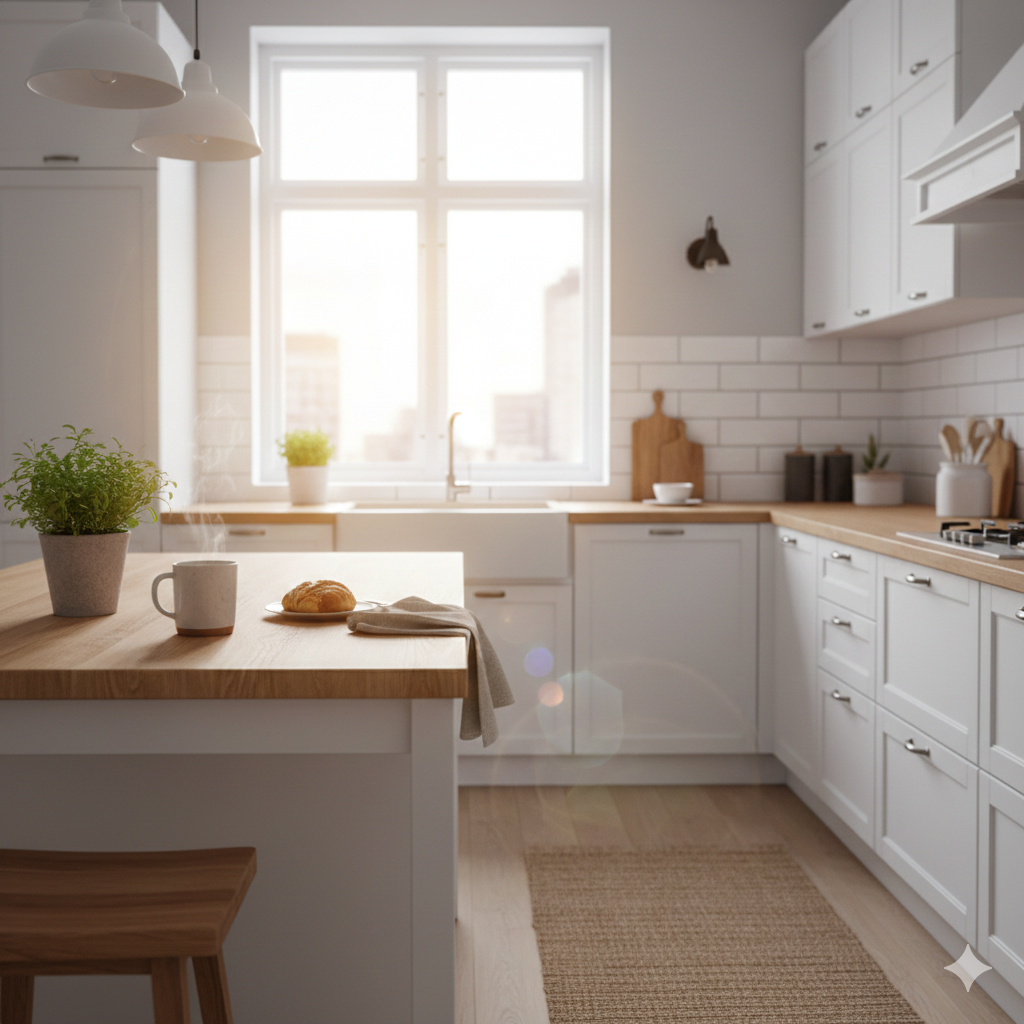 Белая кухня — это база. Одни считают её верхом элегантности и чистоты, другие — «больничной палатой», на которой видно каждую пылинку. Если вы сейчас стоите перед выбором цвета для гарнитура, эта статья поможет вам принять решение, о котором не придется жалеть через месяц после установки. Это не миф, а физика. Белый цвет обладает самым высоким коэффициентом светоотражения. Для типовых кухонь 6–9 кв. метров это спасение: границы стен размываются, и помещение кажется просторнее и выше. Белый — это чистый холст. Сегодня у вас скандинавский уют с деревянными столешницами, а завтра вы поменяли ручки на золотые, добавили яркий фартук — и получили неоклассику. Вам не нужно менять всю мебель, чтобы обновить интерьер. Парадокс, но это так. На темных (особенно черных глянцевых) фасадах пыль, разводы от воды и высохшие капли видны под любым углом. На белом матовом фоне мелкие загрязнения «теряются». Пыль не видна, зато брызги соуса, следы от вина или чая на белом — это катастрофа. Если вовремя