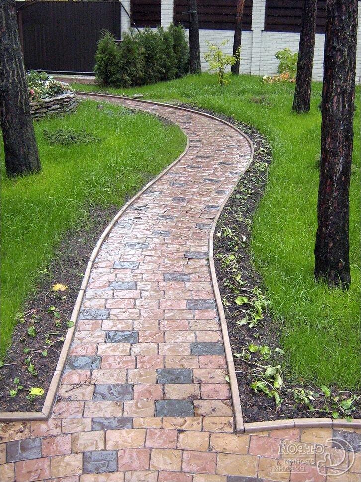 Сочетание разных материалов позволяет сделать дорожки интересными, выразительными и менее формальными.