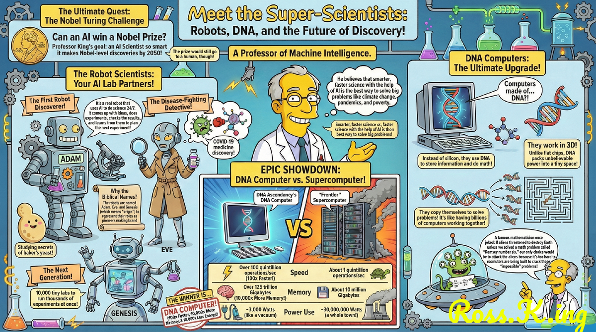 • Росс Д. Кинг (Вычислительный уровень): За его работами нужно следить, если ваша задача — поиск альтернативного субстрата для вычислений. Его концепция Недетерминированной универсальной машины Тьюринга (NUTM) на основе ДНК нацелена на решение NP-полных задач, которые экспоненциально сложны для классического кремния. В условиях нехватки GPU и HBM подход Кинга предлагает использовать массовый параллелизм молекул, где ограничением выступает не время (тактовая частота), а пространство (количество молекул в растворе), что теоретически делает такие системы быстрее и энергоэффективнее квантовых или классических суперкомпьютеров.
