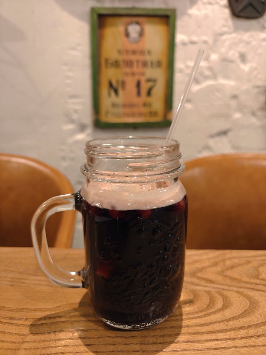 Наш ответ глинтвейну и пуншу. Напиток был невероятно популярен в Ярославле до революции. Варили его из меда и клюквы с разными специями, в каждом дворе был свой рецепт. Этот вариант из темного пива, красного полусладкого, брусники, корицы и бадьяна обнаружил в пивном и мясном заведении "Хмель и гриль". Славное место, в перерывах между глотками можно поразглядывать коллекцию артефактов, от дореволюционных табличек с домов Ярославля до барельефов с театра Волкова. @foodiscovery #ярославль