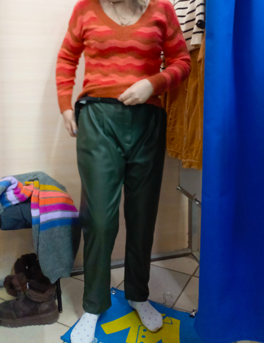 Следующий комплект таков. Карго хлопковые, джемпер полностью синтетический.