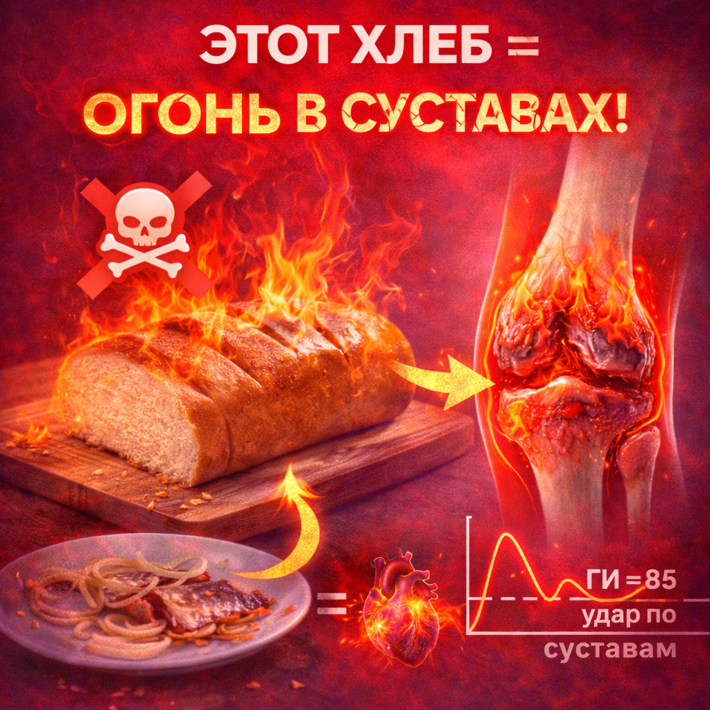 Отец ел это каждый день — колени опухли за 3 месяца. Ортопед запретил и боль ушла! Мой отец всю жизнь был активным. В свои 70 лет ходил на рыбалку, в огороде копался, с внуками играл. Но потом начал жаловаться: колени болят, пальцы опухают, по утрам суставы «заклинивает». Мы пошли к ортопеду — врачу с 45-летним стажем, самому 76 лет, но двигается как молодой. Он осмотрел папу и задал неожиданный вопрос: — Вы едите белый хлеб? Папа удивился, но кивнул. И доктор сказал фразу, которая изменила нашу жизнь: «Вот ваша главная проблема». Врач показал нам снимки папиных суставов: — Видите воспаление? Это не просто возраст. Это результат того, что вы едите каждый день. Папа не понял: — Причём тут еда? — При чём, — ответил доктор. — 70% воспалений в суставах после 60 лет связаны с питанием. И один продукт — главный провокатор. Ортопед объяснил: Белый хлеб = рафинированная мука Из неё удалены все полезные вещества: клетчатка, витамины, минералы. Осталась только быстрая глюкоза. 1. Резкий скачок