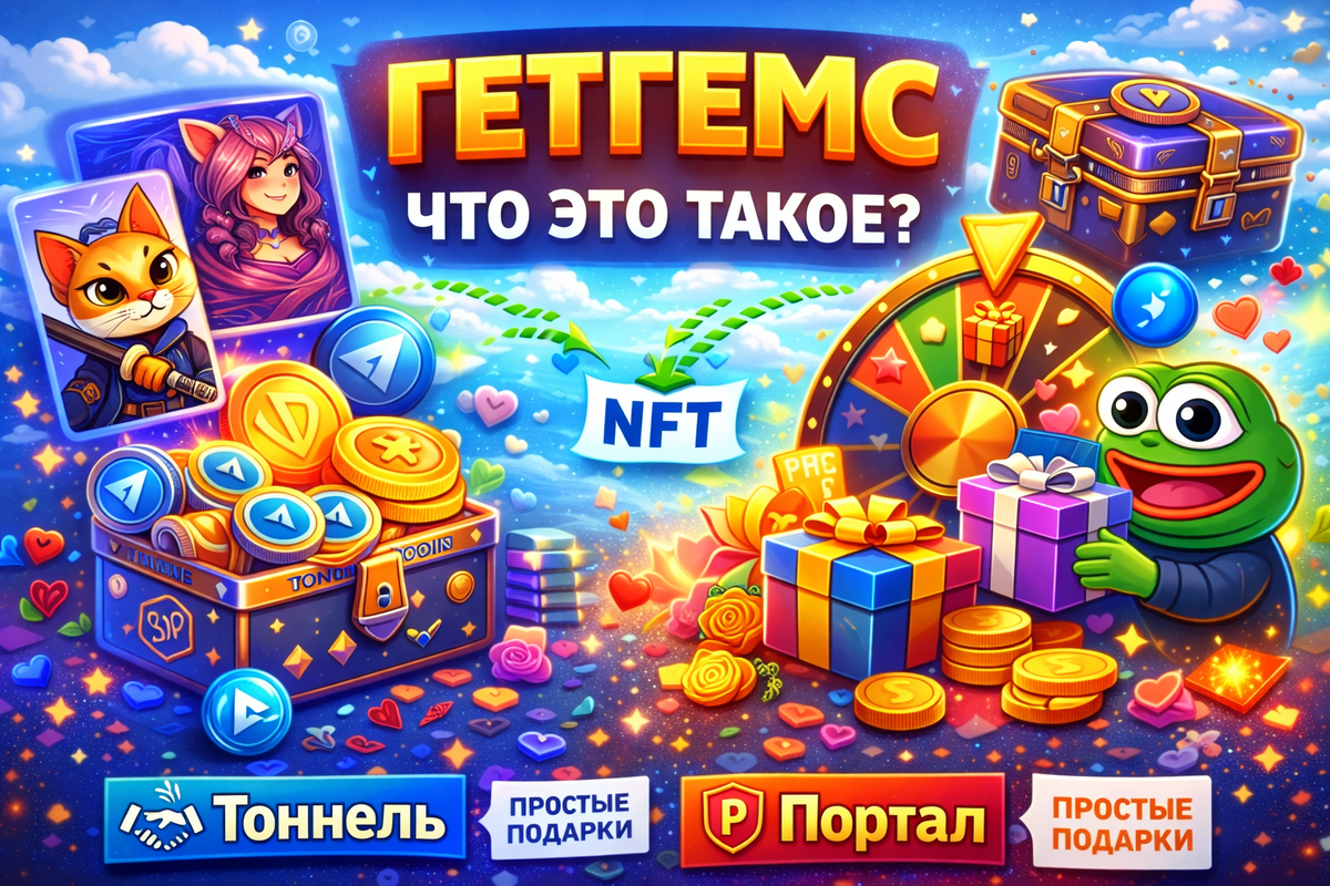 Запрос гетгемс в 2025 году стабильно растёт. Пользователи Telegram всё чаще ищут информацию о платформе getgems.io, пытаясь разобраться, что это за сайт, как он работает и стоит ли покупать там подарки, стикеры и NFT. Если коротко: гетгемс — это NFT-маркетплейс на блокчейне TON, тесно связанный с экосистемой Telegram. Но подходит ли он всем? И есть ли более простые альтернативы? Давай разбираться 👇 Если тебе важна быстрая покупка подарков без сложностей с NFT и кошельками, сразу стоит обратить внимание на маркет подарков на Портале или посмотреть подарки в Тоннеле — это прямые альтернативы гетгемс для обычных пользователей Telegram. Гетгемс (GetGems.io) — это онлайн-площадка, где продаются и покупаются NFT-активы на блокчейне TON. По сути, это рынок цифровых предметов, которые: Через гетгемс ио можно купить: Важно понимать: гетгемс — это не обычный магазин подарков, а именно NFT-маркет. Чтобы пользоваться гетгемс, нужно пройти несколько шагов: После этого купленный предмет не появляет