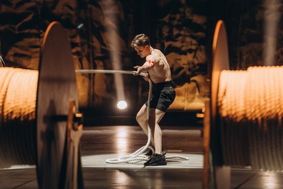 Первым заданием было силовое вытягивание каната. Каждому атлету требовалось как можно быстрее вытянуть 120 метров каната, масса которого составляла 50% его собственного веса. В следующий этап выходили девять спортсменов. В итоге Алексей Яшанькин показал девятый результат. Вместе с ним в следующий этап пробились Владимир Чайка, Александр Сычугов, Никита Нагорный, Эдуард Трояновский, Артем Бабаев, Никита Ушнев, Евгений Генин и Кирилл Бельский.