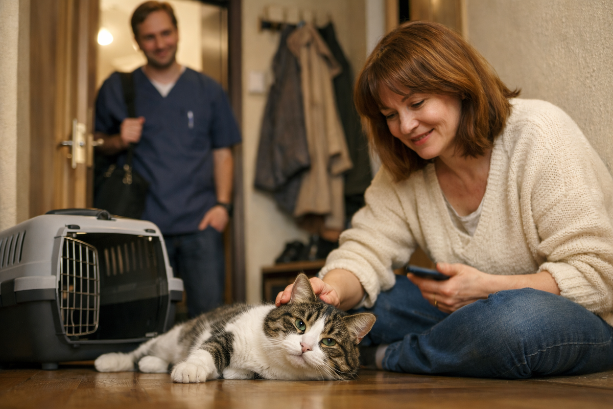 Хозяйка, Ирина, стояла в коридоре и держала переноску так, будто это не пластик, а чемодан с её прошлой жизнью: страшно открыть, а таскать устала.