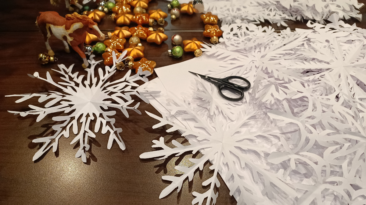 Но у меня есть проверенное средство – я вырезаю снежинки. Несколько листов белой бумаги, ножницы и, пожалуйста – кто-то подглядывает за процессом вырезания. Ну конечно, это оно, новогоднее настроение. ❄