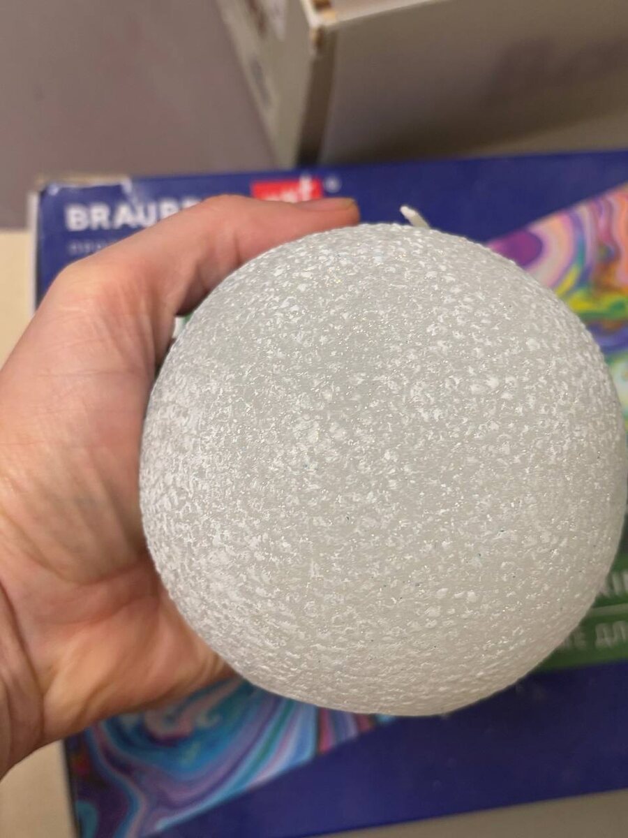 Все начинается с заливки. Я растапливаю воск, добавляю пигменты, ароматы — зимний воздух с нотками хвои и мороза, — и аккуратно заливаю смесь в форму. Это медитативный процесс, требующий терпения: воск должен остывать постепенно, чтобы не образовывались пузырьки, не появлялись трещины. Я наблюдаю, как из жидкого золота рождается идеальный шар с приятной текстурой — будущий носитель истории.