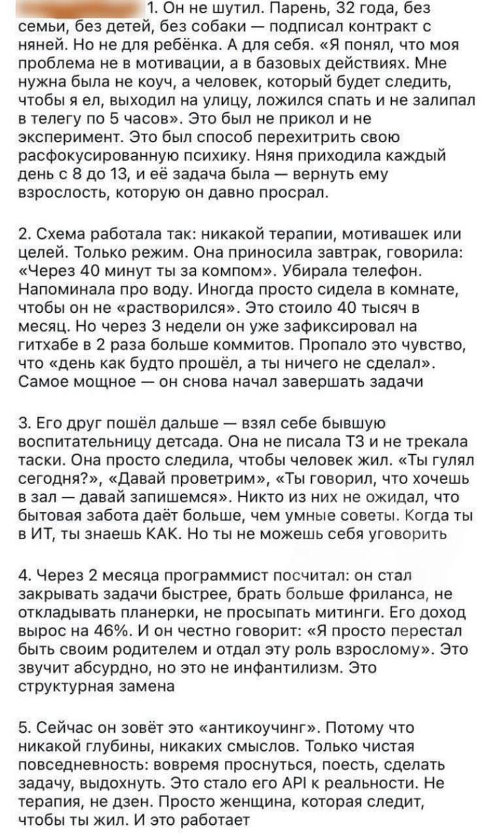 Айтишник 32 - х годов нанял себе няню из детского сада. Упорядочить жизнь.