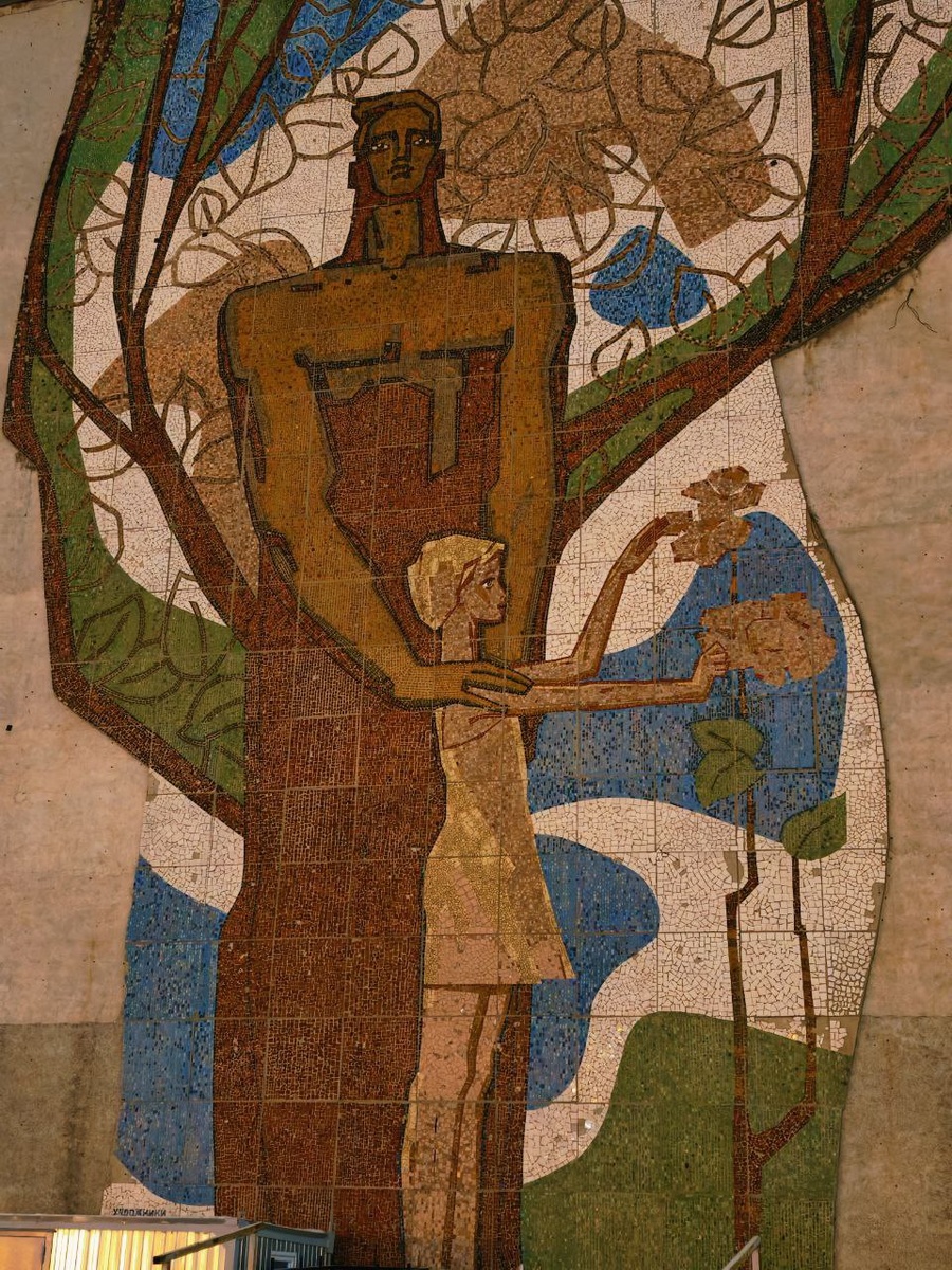 Сграффито советская мозаика на ДК Химиков. Была долгое время закрыта фасадной плиткой.