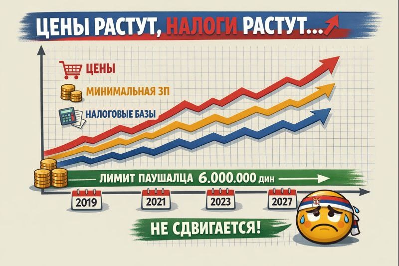 Несмотря на ходившие разговоры, государство решило ничего не “ломать” и продлила действующие правила еще минимум на два года — до конца 2027 года. То есть: - лимит для паушальцев остается 6.000.000 дин в календарный год - правила расчета налога не меняются - модель остается прежней: учитывается вид деятельности, место регистрации, средняя зарплата по муниципалитету, стаж предпринимателя и пр. 🔹 Остается и важная льгота: если вы впервые открываете ИП и выбираете паушал — 50% уменьшение налоговой базы в первый год. 🔹 Ограничение роста Для “старых” паушальцев продолжает действовать ограничение роста налога максимум на 10% в год – но есть исключения: - смена вида деятельности - переезд в другую општину (в пределах той же ограничение сохраняется) Если считаете, что решение налоговой неверное — можно подать жалобу в течение 15 дней. #сербскиймойбухгалтер #паушал #паушальцы