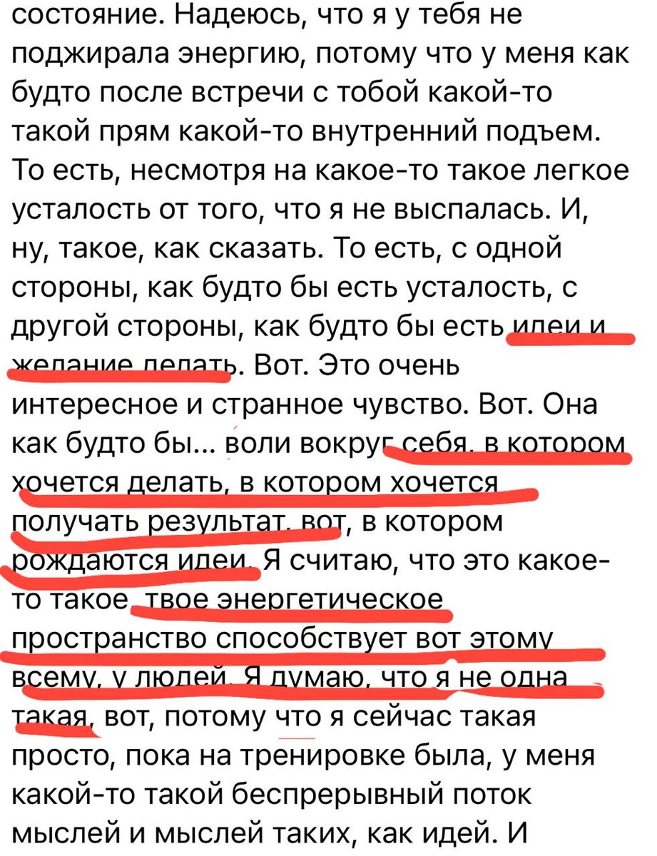 уважаю 🔝 захотелось частью и с вами поделиться, это скрин из голосового 🥰 Прияятно очень и, кстати, я ведь правда, часто слышу, что после взаимодействия со мной появляется мотивация делать. Может начать думать в сторону бизнес-психологии? Ну и опять же, как правильно я нашла свою миссию, быть наставником (которого вы заслужили, но не все 😄) и консультантом, помогать людям работать над своим личным брендом 💯