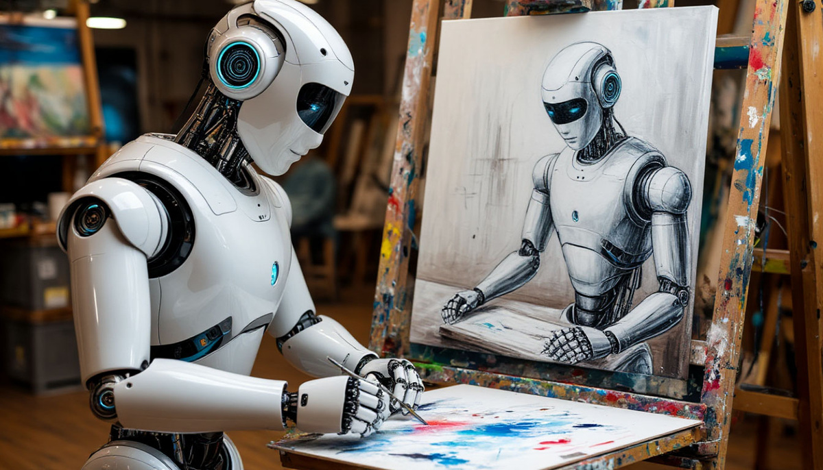 Возьмём простую идею: “Портрет андроида, который мечтает стать художником.”