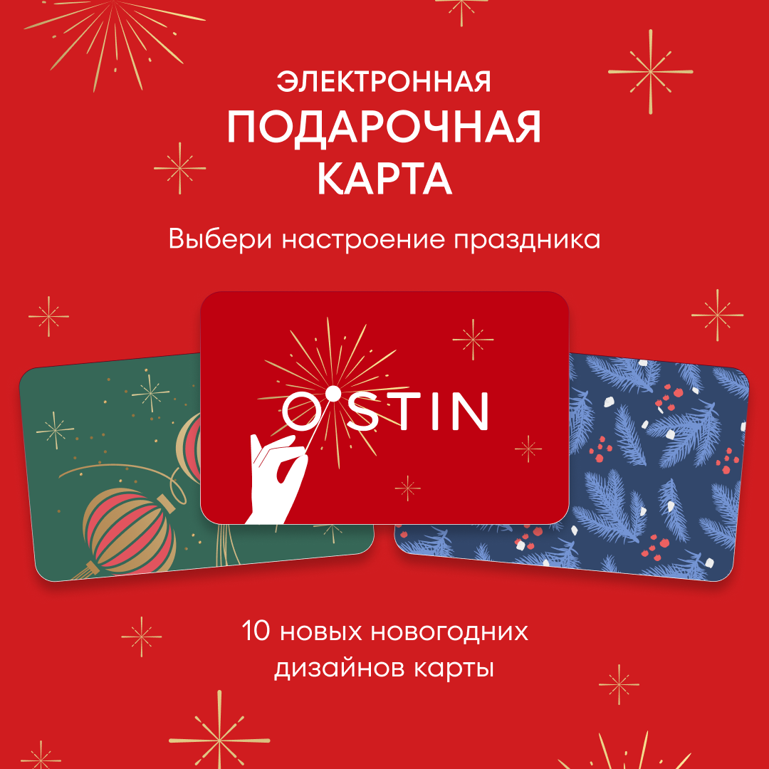 Красота в деталях, подумали мы и добавили 10 новых праздничных дизайнов для электронных сертификатов. Каким будет твой подарок? Просто выбирай сумму и удобный формат. Радуй близких вместе с O’STIN. Купить сертификаты можно в магазинах и онлайн. Ждём тебя в O’STIN!