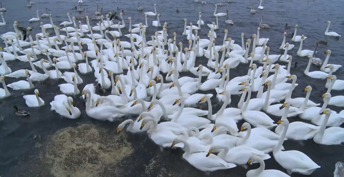 Лебединая песнь. Пернатые слетаются на незамерзающее озеро в Алтайском крае для зимовки