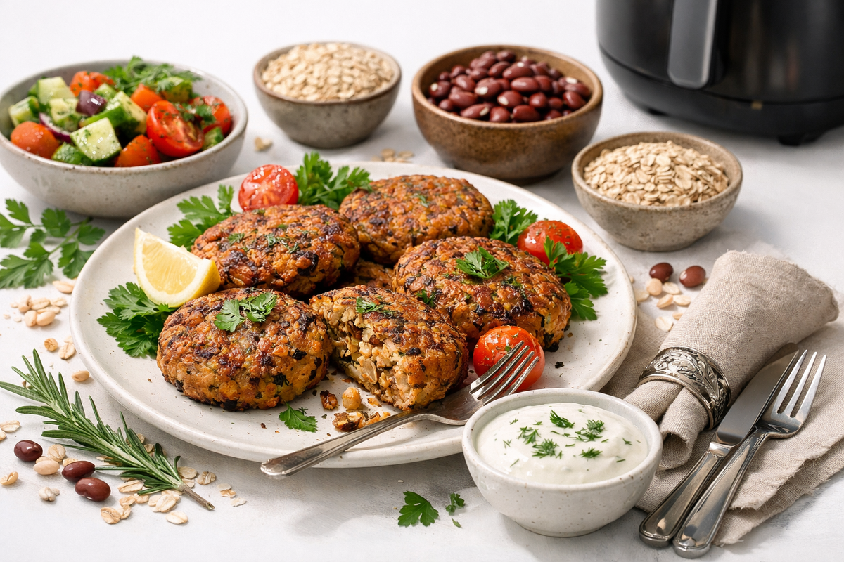 Эти котлеты выглядят как лёгкая овощная закуска, а на деле спокойно заменяют полноценный ужин. Снаружи румяная корочка, внутри мягкая фасоль с овсянкой, а в центре – сочная начинка из курицы, яйца и сыра. Готовлю их в аэрогриле, без жарки и лишнего жира, и каждый раз удивляюсь, насколько это вкусно и сытно.
