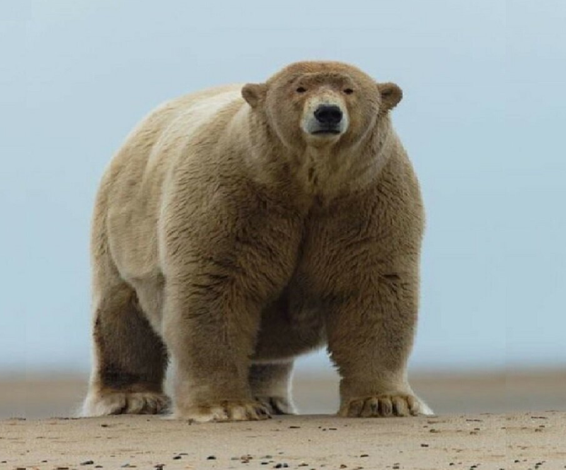 Во-первых, размерами. Его живот настолько велик, что практически волочится по снегу, когда он идёт. Средний вес взрослого самца медведя — около 400-450 килограммов. Альберт же дотянул до 650, а может, и больше.