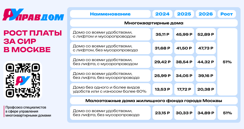 Ассоциация АКОН по запросу своего члена - ИП Креков Сергей Сергеевич - в связи с оспариванием им в суде постановления Правительства Москвы № 2902-ПП, провела исследование цен за содержание мест общего пользования, утвержденных постановлениями Правительства Москвы за период 2024-2026 годов. На основании «Приложения 3» к постановлению Правительства Москвы от 8 декабря 2023 года № 2420-ПП, «Приложения 4» к постановлению Правительства Москвы от 6 декабря 2024 года № 2797-ПП, постановления Правительства Москвы от 26 ноября 2025 года № 2902-ПП были проанализированы цены за содержание жилых помещений, действовавшие в 2024 - 2026 годах и темпы их роста. Как видно из таблицы, рост цен за содержание жилых помещений многоквартирных домов, установленных в период 2024-2026 годов, составил 51%. В то же время, по данным Росстата, индекс потребительских цен составил: - январь-ноябрь 2025 года к январю-ноябрю 2024 года - 108,98 - январь-ноябрь 2024 года к январю-ноябрю 2023 года - 108,35 Эти данные го