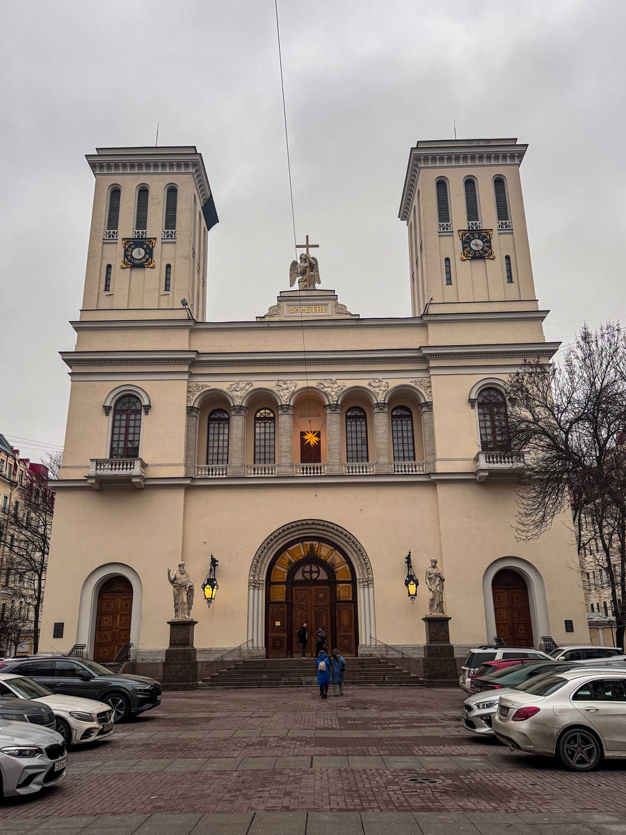 Вот и я столько лет ходил мимо, но ни разу не был внутри. До позавчерашнего дня. Удивительно, но это культовое сооружение находится прямо перед глазами каждого, кто хоть раз бывал в Петербурге. А многие жители Ленинграда до 1993 года даже ходили сюда поплавать — бассейн находился в центре города прямо на Невском! Кажется, мне даже родители об этом рассказывали. Однако история этого места тесно переплетается с историей нашего города. С самого заложения Петербурга к строительству города привлекались иностранные рабочие, среди которых было много немцев-лютеран. И сразу же в 1704 году на территории Петропавловской крепости возникла первая кирха. Время шло, город рос, иностранные рабочие прибывали, поэтому еще в правление Петра Второго на «Невской Першпективе» был выделен участок под строительство новой кирхи. Первый камень был заложен в 1728 году в день святых апостолов Петра и Павла, а через 2 года церковь была освящена. Примерно через столетие собор перестроили, и сейчас мы видим здание