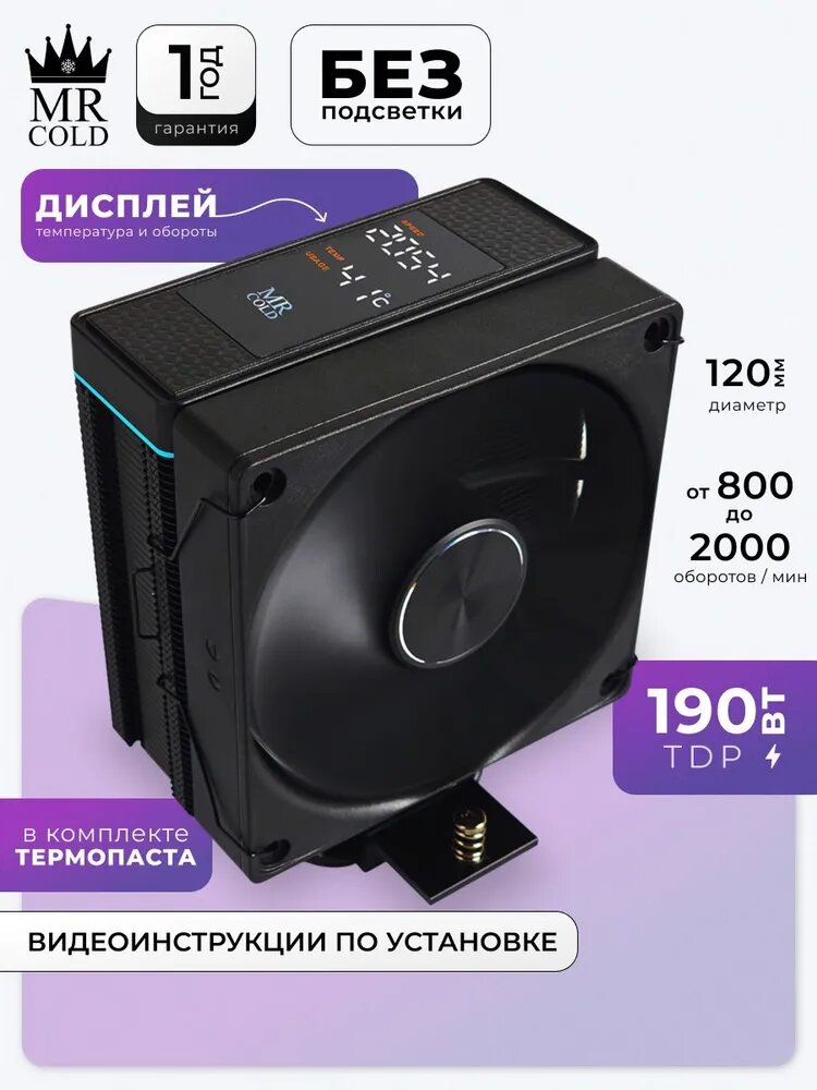 - Выбор кулера: Можно взять недорогой башенный кулер с TDP 130-160 Вт (например Mr COLD J30 - ссылка на товар). Он будет справляться с тепловыделением этого i5 в полтора раза эффективнее, чем нужно. Результат — холодно и очень тихо даже под нагрузкой.