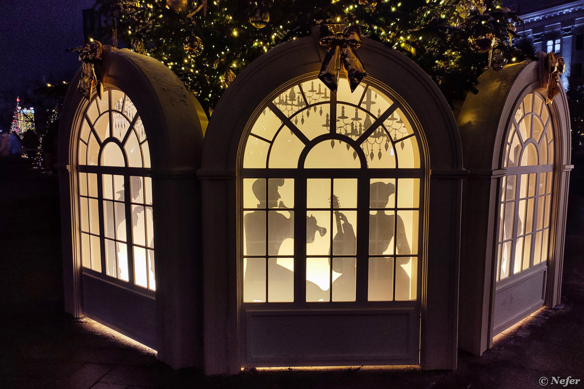 Знаковое место Москвы - Театральная площадь. В сквере у Большого театра инсталляции, будто из сказки. Как будто театральные декорации вынесли на улицу. В фонтане огромные цветы, а вокруг домишки, как в маленьких европейских городках, фотозона с люстрой и трехголовый мышиный король из сказки "Щелкунчик". Центральный Детский Мир на Лубянке украшен светящимися золотыми ключиками. На углу Рождественки стоит гигантский светодиодный Буратино. Вдоль фасада установлены световые инсталляции, много, чтобы всем хватило. А в витринах сюжеты из сказок. Сквер у памятника Карлу Марксу. Место серьезное, вольности тут неуместны. Однако, Новый год! Чуть в стороне елка, а по периметру светящиеся деревья. Фигуру Маркса не тронули. Фонтан Витали, также известный как Петровский фонтан, является одним из старейших в Москве. Он находится на месте водоразборного бассейна, к которому когда-то съезжались водовозы. Чаша фонтана расположена на постаменте, который держат четыре амура, олицетворяющие трагедию, комед