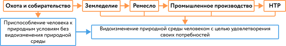 История развития человеческого общества — это история его взаимодействия с природой. Характер связей человека и природы можно рассматривать двояко. Этапы развития хозяйств С развитием человеческого общества природная среда, являясь источником ресурсов, всё в большей степени вовлекается в сферу человеческой деятельности и подвергается значительным изменениям.