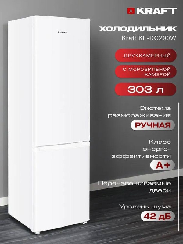 ☃️🔠🔠🔠🔠🔠 🔠🔠🔠🔠🔠🔠☃️ 🪙Суперцена- 26200 руб ❎Цена Ozon -28790 руб ⚡️Двухкамерный холодильник KRAFT KF-DC290W⚡️ 🟢Объем холодильника 303 л. 🟢Механическое управление. 🟢Скрытые ручки. 🟢Светодиодное освещение. 🟢Функция суперзаморозки. 🟢Функция суперохлаждения. 🟢Время сохранения холода при отключении электроэнергии 12 ч. 🟢Мощность замораживания 3 кг/сутки. 🟢Класс энергопотребления A+. 🟢Размеры (ВхШхГ) 180х55х56 см. 🟢Цвет белый. * Количество товара по акции ограничено. * Все подробности акции можете уточнить в магазине. ‼️Большой ассортимент бытовой, климатической техники и мебели в наличии и под заказ. 🛠️Гарантия. 🪙Всегда низкие цены. 🚘Доставка и самовывоз. ✅Товар в наличии и под заказ! 📱Подпишись на наш Telegram-канал, чтобы быть в курсе всех новостей и акций https://dzen.ru/id/624403688ece4c22710971d5 📱Наше сообщество в ВК: https://vk.com/teza.shop 🌐Наш интернет-магазин: https://teza.shop 🚩Магазин «Теза Шоп», Новоазовск, ул. Ленина, 37г (вход во двор с Ленин