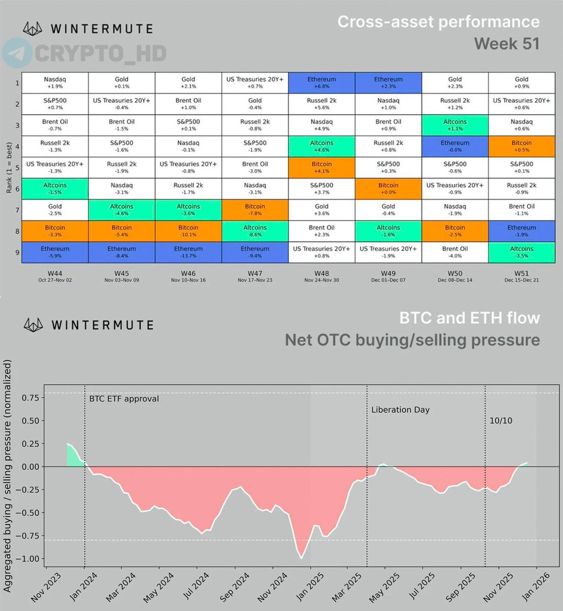 ❌ Альтсезон отменяется? Из обзора рынка от маркетмейкера Wintermute – розничные инвесторы начали ротацию из альткоинов обратно в BTC и ETH. Институционалы стабильно покупают BTC и ETH с лета. ➤ BTC-доминация стабильно растет всю вторую половину года. ➤ Альткоины проседают под грузом разблокировок токенов. ➤ Капитал концентрируется только в BTC и ETH. ➤ Рынок в боковике из-за праздников и низкой ликвидности. Вывод: Альтсезон возможен, но не сейчас. Сначала BTC должен закрепиться выше и показать силу. Краткосрочно – боковик и встряски от ликвидаций. Среднесрочно – институционалы обеспечат рост. Crypto Headlines