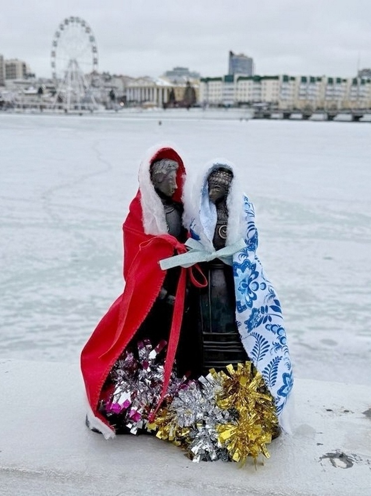 Преподаватели художественного отделения Детской школы искусств №1 под руководством Татьяны Алексеевой создали для фигурок сказочных персонажей, расположенных вокруг залива и на Московской набережной, необычные новогодние наряды. Три композиции, посвящённые героям чувашского фольклора, преобразились к празднику. «Волжская русалка» получила карнавальный наряд с венецианскими мотивами и воздушными кружевами. Фигурки влюблённых Сетнера и Нарспи теперь одеты как Дед Мороз и Снегурочка. Неожиданным получился образ Луны из композиции «Девушка на Луне» — она превратилась в волшебного звездочёта в колпаке с бубенцами. Саму девушку украсил ажурный воротник, напоминающий снег. В школе искусств отметили, что проект будет продолжен, и жители скоро увидят новые образы полюбившихся персонажей. Автор: Валерий Иванов