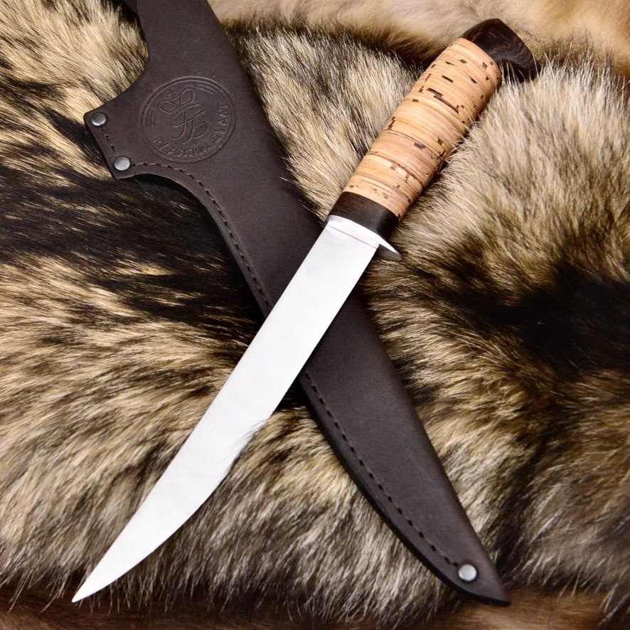 🔪Филейный нож Судак средний, сталь 95Х18, береста, венге