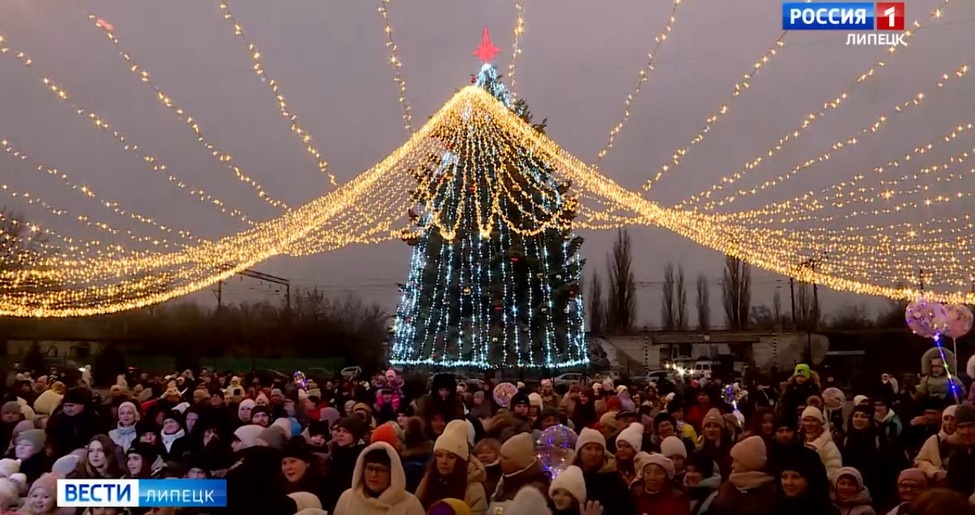 Сотни гостей собрались на открытие главной городской елки в Грязях Липецкой области