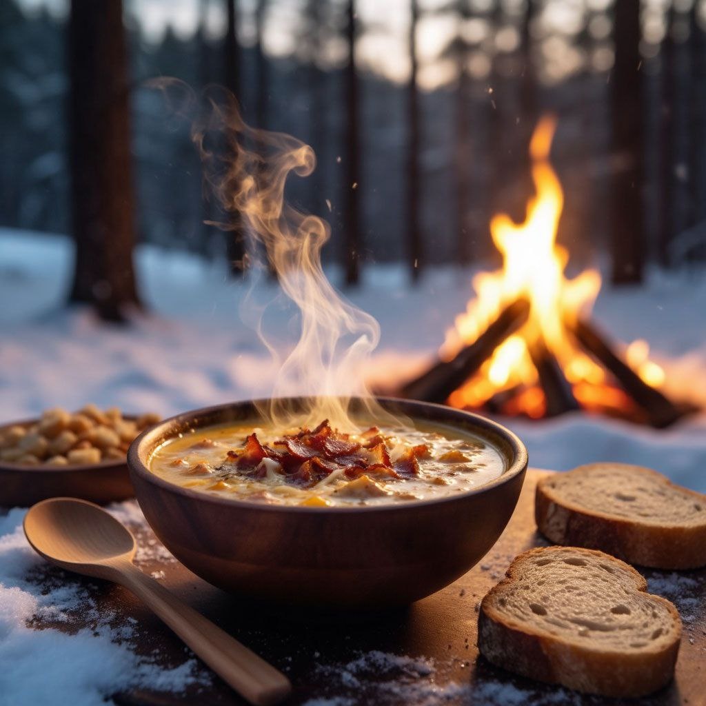 » 🥔 Картофель — 6 штук, кубиками. 🥓 Бекон — 200 г, кубиками. 🧅 Лук — 1 штука, мелко. 🥕 Морковь — 1 штука, натри. 🫒 Масло — 1 ст. ложка. 🧂 Соль, перец — по вкусу. 🥛 Молоко — 500 мл. 🧀 Сыр — 100 г, натереть. 🌿 Укроп — для подачи. 🔥 В казане разогрей масло. Обжарь бекон до хруста. Добавь лук, морковь — жарь 5 минут. Добавь картофель, залей 1,5 литра кипятка. Вари 20 минут. Влей молоко, посоли, поперчи. Вари ещё 10 минут. Посыпь сыром, дай расплавиться. Готово. Кремовый, с хрустом бекона, с ароматом сыра. Как будто ты не просто сварил — а обнял всех тёплым одеялом. 👇 Сохрани — суп, от которого все говорят: «Я хочу жить в этой тарелке» #суп #казан #картофель #бекон #сыр #новыйгод #костёр #вкусно #обнимашки