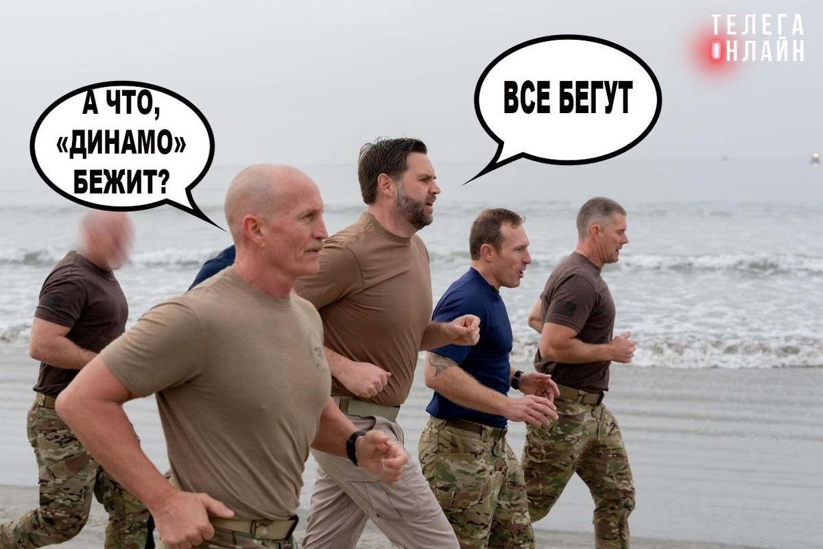 Вице-президент США Вэнс влился в число политиков, пиарящихся на спорте. Не удержались, чтобы не улучшить фото его тренировки с «морскими котиками». 🚲 Подпишись на Телега Online